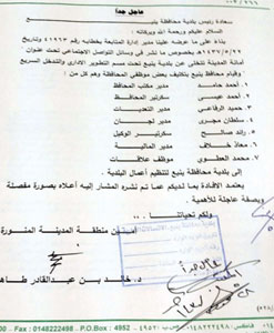 وفيما تظلم 7 موظفين بمحافظة ينبع من قرار المحافظ بنقلهم للعمل في بلدية المحافظة مع وجود اختلاف في مسميات ومهامهم الوظيفية، استجابت معه أمانة المدينة المنورة التي أرسلت بدورها خطاب استفسار لرئيس البلدية عن صحة الخبر ودواعيه. وتضمن خطاب أمانة المدينة المنورة استفسارا على ما عرضه مدير المتابعة من قيام مجموعة من الموظفين بالتظلم من نقلهم للعمل في بلدية ينبع بمواقع التواصل واتهامهم أمانة المدينة بالتخلي عن بلدية ينبع، ما استدعى نقلهم بحجة التطوير الإداري والتدخل السريع وتنظيم أعمال البلدية، وطلبت الأمانة الإفادة عما تم نشره في مواقع التواصل بصورة مفصلة وعاجلة للأهمية.