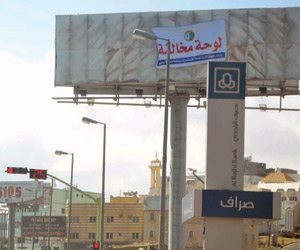 تهدد اللوحات الإعلانية المخالفة على طريق الملك فهد الرابط بين أبها وخميس مشيط الشركات المعلنة بها بالإغلاق، وذلك لعدم حمل تلك اللوحات لاسم المجمع الذي تقع ضمن حدوده.