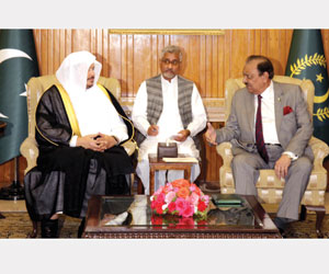 وأشاد الرئيس الباكستاني خلال استقباله رئيس مجلس الشورى الشيخ الدكتور عبدالله آل الشيخ، الذي يقوم بزيارة رسمية إلى جمهورية باكستان الإسلامية على رأس وفد يضم عددا من أعضاء المجلس، بالعلاقات الثنائية المتميزة بين البلدين الشقيقين، مشيرا إلى أن التوافق بين الرياض وإسلام أباد وصل إلى حد التطابق تجاه الكثير من القضايا والتطورات الدولية.