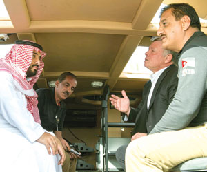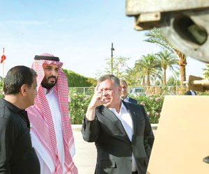 خلص اجتماع ملك المملكة الأردنية الهاشمية الملك عبدالله الثاني مع ولي ولي العهد الأمير محمد بن سلمان بن عبدالعزيز، أمس، إلى توقيع مذكرة تفاهم لتأسيس صندوق استثماري مشترك، إلى جانب تعزيز التشاور السياسي تجاه القضايا والأزمات الإقليمية، والأخذ بخيار الحل السياسي لها، ورفض سياسة التدخل التي تنتهجها إيران في المنطقة، والتي تشعل الفتن الطائفية وتنمي الإرهاب.