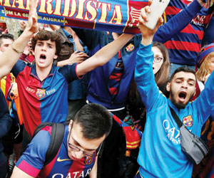 عاش برشلونة هزة فنية ونتائجية أعادت خلطة "الليجا" في صراع القمة، فرغم ابتعاده في صدارة الترتيب بفارق مريح تجاوز في إحدى المراحل 9 نقاط كاملة، إلا أن أبناء المدرب لويس إنريكي فقدوا هذه الأفضلية تدريجيا، حيث بدا التراجع منذ الجولة الـ30 بالتعادل مع فياريال ثم السقوط المفاجئ في ثلاث جولات متتالية، كانت أولاها أكثر مرارة حينما خسروا وفي معقلهم "كامب نو" أمام الغريم الأزلي ريال مدريد بهدفين لهدف، وبدا أن تلك العثرة تركت أثرها من الناحية المعنوية بعدما عاودوا تلقي الخسائر مرتين متتاليتين أمام ريال سوسيداد 0-1 وفالنسيا 1-2 ليقلص منافساه فريقا العاصمة أتليتكو والريال الفارق إلى نقطة فقط، قبل أن يفقد الأول فرصة المنافسة في الرمق قبل الأخير بخسارة غير متوقعة من ليفانتي.