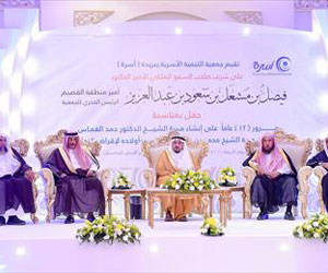جاء ذلك خلال رعاية أمير المنطقة للحفل التكريمي الذي أقامته جمعية "أسرة" لأحد أبرز مؤسسيها الدكتور حمد بن محمد الغماس.