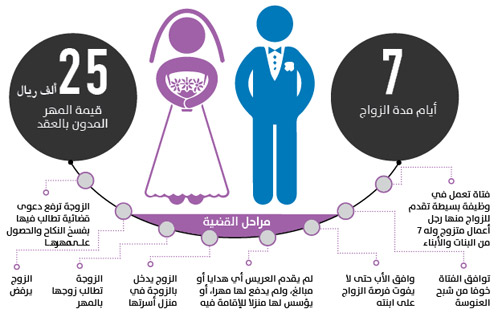 قال مصدر لـ "الوطن" إن "فتاة تعمل في وظيفة بسيطة تقدم للزواج منها رجل أعمال يكبرها بعدة سنوات ومتزوج وله 7 من البنات والأبناء، فواقفت خوفا من شبح العنوسة، وقبل به والدها البالغ من العمر 72 عاما، حتى لا يفوت فرصة الزواج على ابنته مع قلة العرسان، ولكنه رغم ذلك لم يقدم لها الزوج أي هدايا أو مبالغ مالية، ولم يدفع لها مهرا، أو يؤسس لها منزلا للإقامة فيه، بل دخل بها بمنزل أسرتها، وبعد مرور أسبوع على الزواج طالبته بمستحقاتها الشرعية وهو المهر، ولكنه رفض، فاضطرت لرفع دعوى قضائية تطالب فيها بفسخ النكاح، والحصول على مهرها الذي كتبه الزوج في عقد الزواج وقدره 25 ألف ريال".