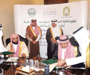 أعرب المدير العام لمؤسسة الأعمال الخيرية لعمارة المساجد، التابعة لوزارة الشؤون الإسلامية والدعوة والإرشاد، الدكتور عثمان عبدالعزيز المنيع، عن شكره لمستشار خادم الحرمين الشريفين أمير منطقة مكة المكرمة الأمير خالد الفيصل، على رعايته توقيع اتفاقية التعاون والتفاهم مع المدير العام لفرع وزارة الشؤون الإسلامية والدعوة والإرشاد بمنطقة مكة المكرمة الشيخ علي العبدلي، لبناء 50 مسجدا داخل حدود الحرم المكي.