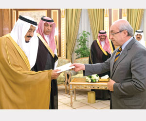 وأكدوا حرصهم على تعزيز العلاقات بين بلادهم والمملكة العربية السعودية، والرقي بها في مختلف المجالات، وأجريت للسفراء المراسم المعتادة في مثل هذه المناسبة.