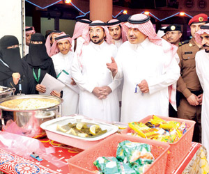 عقب ذلك تجول أمير الباحة في سوق الأسر المنتجة الذي يحتوي على 24 معرضا لمنتوجات الأسر المنتجة، من مأكولات شعبية، وحرف تقليدية، ومنسوجات نسائية تشتهر بها المنطقة، كما زار سموه ساحة الاحتفالات المقامة بجانب مركز الملك عبدالعزيز الحضاري، حيث شاهد العرضة الشعبية التي تقدمها فرقة جمعية الثقافة والفنون للفنون الشعبية بالمنطقة.