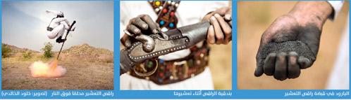 رغم خطورة رقصة "التعشير"، التي تعتمد على البارود والنار وتقتصر على الرجال في مناسبات الزواج والأعياد، إلا أن المصورة الفوتوجرافية خلود الخالدي"22عاما"، استطاعت أن تغامر وتزاحم المهتمين بهذا الموروث الشعبي، لكي تلتقط اللحظات المثيرة في اللعبة بعدستها الفوتوجرافية، وتسجل اسمها كأول سعودية تصور هذه اللحظات المثيرة في هذا الموروث الشهير.