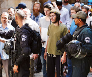 بحماية قوات الاحتلال التي فرضت قيودا على دخول المصلين المسلمين إلى المسجد الأقصى وأغلقت عددا من بوابات المسجد، اقتحم مئات المستوطنين الإسرائيليين ساحات الأقصى أمس. وجاءت الاقتحامات الواسعة في ذكرى ما يسميه اليهود بـ"خراب الهيكل" الذي يزعمون أنه كان مقاما مكان المسجد الأقصى، حيث دفعت شرطة الاحتلال بقوات معززة من صفوفها إلى محيط البلدة القديمة وداخلها لتأمين وصول المستوطنين إلى حائط البراق، بعد أن أغلقت أول من أمس محاور طرق رئيسية عدة مع بدء توافد اليهود للصلاة في الأقصى، كما نشرت المئات من عناصرها على البوابات القديمة وفي أزقتها وعند بوابات المسجد الأقصى. وقال مسؤول الإعلام في دائرة الأوقاف في القدس، فراس الدبس، إن عناصر الشرطة الإسرائيلية صادروا البطاقات الشخصية للمصلين على أبواب المسجد وأغلقوا بوابات المطهرة والملك فيصل والحديد والقطانين، لافتا إلى أن أكثر من 300 مستوطن اقتحموا ساحات المسجد الأقصى أمس من خلال باب المغاربة بحراسة الشرطة الإسرائيلية. وأشارت مصادر إلى أن عددا من المرابطين في المسجد الأقصى حاولوا التصدي للمستوطنين ومنعهم من أداء صلواتهم التلمودية، لكن قوات الاحتلال واجهتهم وقامت بالاعتداء عليهم، مما أدى إلى إصابة ثلاثة فلسطينيين تم نقلهم إلى المستشفى. في الأثناء، دعت وزارة الخارجية الفلسطينية، لحشد كافة الإمكانات لحماية المسجد الأقصى المبارك، من "الحرب الشاملة التي تشنها إسرائيل" عليه، فيما وجّه أمين سر اللجنة التنفيذية لمنظمة التحرير الفلسطينية، الدكتور صائب عريقات، رسائل متطابقة إلى وزراء خارجية دول العالم، حثهم فيها على التدخل العاجل لإلزام إسرائيل، السلطة القائمة بالاحتلال، بإيقاف الاستيطان غير الشرعي الذي يلتهم أرض فلسطين ويقضي على حل الدولتين. وشدد عريقات في رسالته على ضرورة اتخاذ خطوات عاجلة وفاعلة من أجل لجم سياسات الاحتلال الهادفة إلى مصادرة ممتلكات الشعب الفلسطيني، بما يتعارض مع القانون الدولي الذي لا يجيز للقوة المحتلة مصادرة الممتلكات الخاصة بالشعب الواقع تحت الاحتلال.