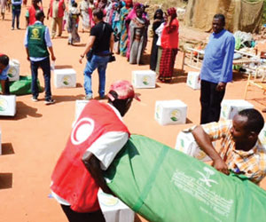 إنفاذا لتوجيه خادم الحرمين الشريفين الملك سلمان بن عبدالعزيز، بتقديم 200 طن من المساعدات الغذائية والعينية والإغاثية للمتضررين من الفيضانات في السودان، قام فريق مركز الملك سلمان للإغاثة والأعمال الإنسانية مع الهلال الأحمر السوداني وعدد من المتطوعين السودانيين بتوزيع المساعدات التي قدمها المركز والمتمثلة في السلال الغذائية والناموسيات والخيام ومساعدتهم في تركيبها في منطقتي شمبات بحري وسوبا المثلث.