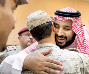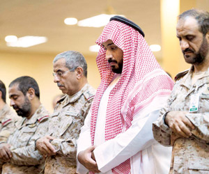 عايد ولي ولي العهد النائب الثاني لرئيس مجلس الوزراء وزير الدفاع الأمير محمد بن سلمان أمس، المرابطين على الحد الجنوبي من ضباط وأفراد القوات المسلحة السعودية وقوات التحالف العربي وقوات تحالف دعم الشرعية في اليمن بالحد الجنوبي بمنطقة جازان، وأدى صلاة عيد الأضحى المبارك معهم، كما ناقش مع القادة العسكريين ميدانيا العمليات العسكرية في الخطوط الأمامية.
