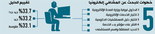 دفعت التوسعات التي تجرى على بنية الطرق الرئيسية والداخلية بمختلف مدن المملكة، نحو 800 ألف مستفيد من المرضى وذويهم للبحث إلكترونيا عن مواقع المستشفيات الحكومية في محافظاتهم جراء كثرة تحويلات الطرق التي غيرت معالم الوصول إليها. وساعد دليل المستشفيات الحكومية المستفيدين على البحث الإلكتروني، وهو أحد الأدلة الإلكترونية التي اعتمدتها وزارة الصحة عبر بوابتها الافتراضية، منذ أبريل الماضي باستخدام مجموعة من معايير البحث، دون الحاجة إلى "اسم مستخدم وكلمة مرور"، كما هي عادة خدمات الوزارة الأخرى، ويمكن للمستخدم البحث بأكثر من معلومة عن المستشفى.