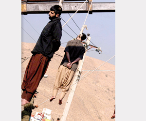 1. دين اجباري ـ وقتي كه خميني و آخوندهاي پيرو او با سركوب قيامكنندگان انقلاب سال 57 حكومت خود را برقرار كردند، آيين عقبمانده خود را با شعار «حزب فقط حزبالله» تحميل ميكردند و زنان را با شعار «يا روسري يا توسري» سركوب ميكردند، سپس بهضرب اعدام و شكنجه و ارعاب، مردم را به مراعات قوانين دين اجباري وادار كردند.