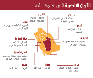 تعد الألوان الشعبية الفلكلورية السعودية من أهم وأكثر الفعاليات استقطابا لزوار المهرجان، حيث تتمازج أصوات ورقصات مؤديها على أرض الجنادرية. وسيكون زوار مهرجان الجنادرية في نسخته الثالثة على موعد متجدد مع حوالي 50 لونا شعبيا من مختلف مناطق المملكة الـ13، ويختلف عدد مؤدي هذه الفنون التراثية باختلاف الألوان الشعبية، حيث يصل عدد المشاركين في لون العرضة السعودية الذي يقدمه جناح منطقة الرياض إلى 30 راقصا وصاحب صوت. في حين يشارك حوالي 90 شخصا في ألوان فلكلورية أخرى مثل لون العرضة الجنوبية من منطقة عسير. وفي الوقت الذي تقدم فيه مناطق مختلفة نفس اللون، كالسامري إلا أن لكل منطقة أسلوبا غنائيا وحركيا يميزها عن المنطقة الأخرى.