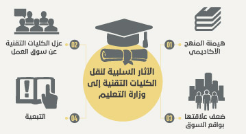 أشار المختصون إلى أنه سيترتب على النقل، إبعاد الكليات التقنية عن تحقيق الغرض منها، قائلين إن الهدف من وجود الكليات التقنية هو تأهيل مخرجات بتخصصات فنية ومستوى تدريب متقدم وسد حاجة سوق العمل إليها، وإن مخرجات الكليات التقنية تتجه إلى ميدان العمل وتباشر المهن وتقف على خطوط الإنتاج وخلف الآلات والأجهزة وإدارة المكاتب والعلاقات تنفيذا وإشرافا ومراقبة.