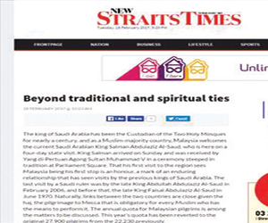 أما صحيفة «نيو ستريت تايمز» الماليزية فقد قالت إن كوالالمبور تضع في اعتبارها أن اختيارها كمحطة أولى لزيارة الملك سلمان الحالية يؤكد حجم التقدير الذي تضعه المملكة لها، مضيفة أن الواقع الاقتصادي العالمي في الوقت الحالي يحتم على البلدين تفعيل التعاون الاقتصادي بينهما، لما فيه مصلحة شعبيهما، وأضافت أن السعودية بوصفها أكبر دولة منتجة للنفط في العالم يمكن أن تقدم فوائد كبيرة لماليزيا، ومساعدتها في استكشاف مواقع جديدة، مشيرة إلى أن شركة أرامكو العملاقة تمتلك تجارب هائلة في هذا المجال. وتطرقت الصحيفة إلى جهود الرياض في مكافحة الإرهاب، وما حققته من نجاحات لافتة، وتابعت أن كوالالمبور تتطلع إلى الاستفادة من تلك التجربة، والوقوف على طبيعة العمل في مركز الأمير محمد بن نايف للمناصحة، بوصفه أشهر الجهات التي تعمل في مجال إعادة دمج الذين تورطوا في أعمال إرهابية في المجتمع من جديد، وهو ما عكسته تصريحات رئيس الوزراء نجيب عبدالرزاق.