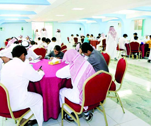 طلال خالد المويشير من مدرسة الرحمانية الأهلية في سكاكا، محمد أحمد البلوي من مدرسة ابن
