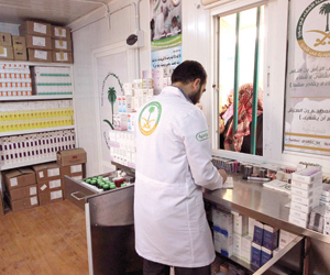 تعاملت العيادات التخصصية السعودية من خلال الصيدلية التابعة لها في مخيم الزعتري مع 2212 حالة مرضية صرفت لها الوصفات الطبية، تشمل عشرات الأصناف من الأدوية والمستلزمات الطبية للأشقاء اللاجئين السوريين الذين راجعوا العيادات خلال هذا الأسبوع.