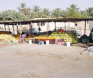 حدد مزارعون وباعة منتجات زراعية «محلية» في نقاط بيع «عشوائية» داخل واحة الأحساء الزراعية، 8 سلبيات لعدم توفر مباسط «مجهزة» لبيع وتداول المنتجات الزراعية في الواحة، وبالتالي تناثر الباعة الجائلين بشكل عشوائي داخل الواحة وأمام المزارع وفي الطرقات الرئيسية.