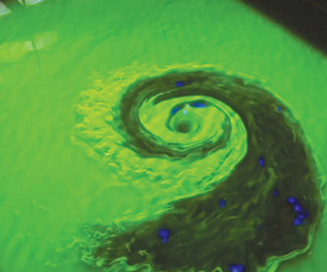 قال الباحث ثيو توريس، «هناك جهاز عرض في الوسط يرسم نمطا محددا على الماء، ولدينا كاميرتان على الجانبين لتسجيل هذا النمط، وخلال النظر إلى التجربة من زاويتين مختلفتين تماما مثل أعيننا، يمكّننا ذلك من الرؤية في ثلاثة أبعاد».