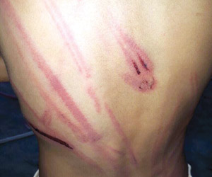 أوضح الناطق الإعلامي لشرطة منطقة جازان النقيب نايف بن عبدالرحمن الحكمي، أنه «ورد بلاغ إلى شرطة محافظة صبيا من المناوب بمستشفى المحافظة، عن وصول طفل مصاب بإصابات متفرقة، نتيجة تعرضه للضرب، وفور تلقي البلاغ انتقل المختصون إلى المستشفى، واتضح خلال المعاينة وجود حدث معنف يبلغ من العمر 11 عاما، ويسكن قرية جخيرة التابعة لمحافظة صبيا، حيث أوضح الطفل لهم أن خاله البالغ من العمر 27 عاما، أركبه في سيارته، وتوجه به إلى منزله بنفس القرية، وأدخله إحدى الغرف، وفي حضور بقية أخواله، أنهال عليه الجميع بالضرب بأسلاك كهربائية، ومن ثم إلقائه خارج المنزل، دون أن يعرف سبب الاعتداء».