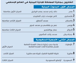 أقرت اللجنة العليا لجائزة المملكة العربية السعودية للإدارة البيئية في العالم الإسلامي 17 مرشحا من 14 دولة إسلامية للفوز بجائزة المملكة العربية السعودية للإدارة البيئية في العالم الإسلامي التي تبلغ قيمتها الإجمالية (280.000) ألف دولار أميركي (مليون و50 ألف ريال).