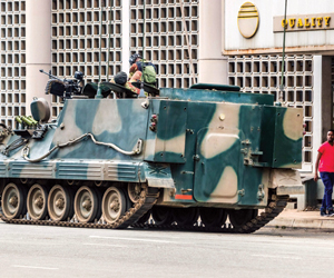 شوهدت مركبات عسكرية خارج مبنى برلمان زيمبابوي، بينما كان جنود يجوبون الشوارع في العاصمة هاراري، أمس.