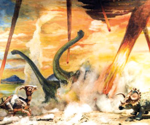 قال مؤلف الدراسة تشارلز باردين من المركز الوطني لبحوث الغلاف الجوي: «إن انقراض الحيوانات التي عاشت على الأرض حدث بسبب الانفجار، ولكن الحيوانات التي تعيش في المياه وتلك التي كان يمكن أن تختبئ تحت الأرض أو الماء، كان يمكن أن تنجو». إذ قبل نحو 66 مليون سنة اصطدم كويكب بعرض 10 كلم وضرب شبه جزيرة يوكاتان (في أمريكا الوسطى وتفصل خليج المكسيك عن البحر الكاريبي)، وكوّن فوهة تشيكشولوب بعمق 20 كم. ولكنه لم يكن الحدث الكارثي الأول الذي ترك أثرا مدمرا على وجه الكرة الأرضية. بالطبع كان مدمرا في المنطقة المحيطة بالجزيرة، حيث تبخر كل كائن حي على وجهها، ولكن حول العالم أجمع كانت هنالك أحداث أخرى مثل زلازل هائلة وأمواج تسونامي. وقد ضرب الكويكب بقوة كبيرة لدرجة أن عددا كبيرا من الصخور تبخر تمامًا وارتفع إلى الغلاف الجوي بشكل كروي، لتعود هذه الصخور إلى الأرض وهي تحترق، مما أدى إلى اندلاع حرائق الغابات بشكل واسع في أنحاء العالم.