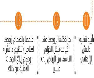 02 مرافقتها لزوجها عند قيامه بنقل الحزام الناسف من الرياض إلى عسير