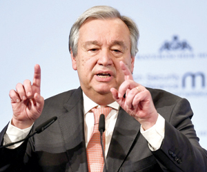 وقال جوتيرش في كلمته خلال مؤتمر ميونيخ للأمن، أول من أمس، إن الوضع في الشرق الأوسط معقد جدا وصعب للغاية، مبينا أنه في زيارته الأخيرة لإسرائيل، لاحظ وجود ميليشيات مقربة من إيران قرب الحدود الإسرائيلية، فضلا عن العلاقة بين طهران وحزب الله، الأمر الذي يراه الكثير من الإسرائيليين تهديدا لوجودهم«.