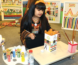 «الوطن» التقت الطفلة نورال في الركن المخصص لها وسط معرض الحرفيين في قرية عسير، تحدثت عن حياتها وهي تلون بأناملها الصغيرة جرة حولتها لتحفة فنية فريدة، تقول أنا من مدينة الغيم والضباب تنومه، ولكني أعيش مع والدي ووالدتي في محايل عسير وأدرس هناك. وحول دور أسرتها بينت أنها تلقت الدعم والتشجيع منها وهيأت لها كل ما تحتاجه.
