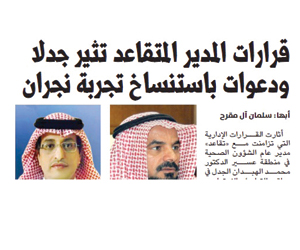 بعد نحو أيام من نشر  «الوطن» تقريرا بعنوان «عسير تنتظر استنساخ تجربة صحة نجران» ، أصدر وزير الصحة توفيق الربيعة أمس ، قرارا بتكليف العميد خالد عسيري مديرا عاما لصحة عسير لمدة عام، بالإضافة إلى عمله مديرا عاما لصحة نجران، ولقي القرار صدى واسعا نظير النجاحات التي حققها في وقت وجيز بمنطقة نجران ،وتمنى عدد من أهالي عسير أن يكون عند حسن ظن الجميع، وأن يروا تجربة صحة نجران الناجحة في عسير، وأن تغير صحة عسير في أدائها وخدماتها التي ظلت تعاني من قصور وتكدس للمراجعين وتعثر لبعض المشاريع.