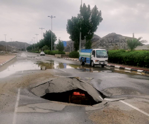 وأعلن مركز 911، إغلاقا جزئيا لطريق مكة - جدة القديم، أمام مصنع كسوة الكعبة المشرفة، بسبب انهيار عبارة تصريف السيول، داعيا إلى أخذ الحيطة والحذر.